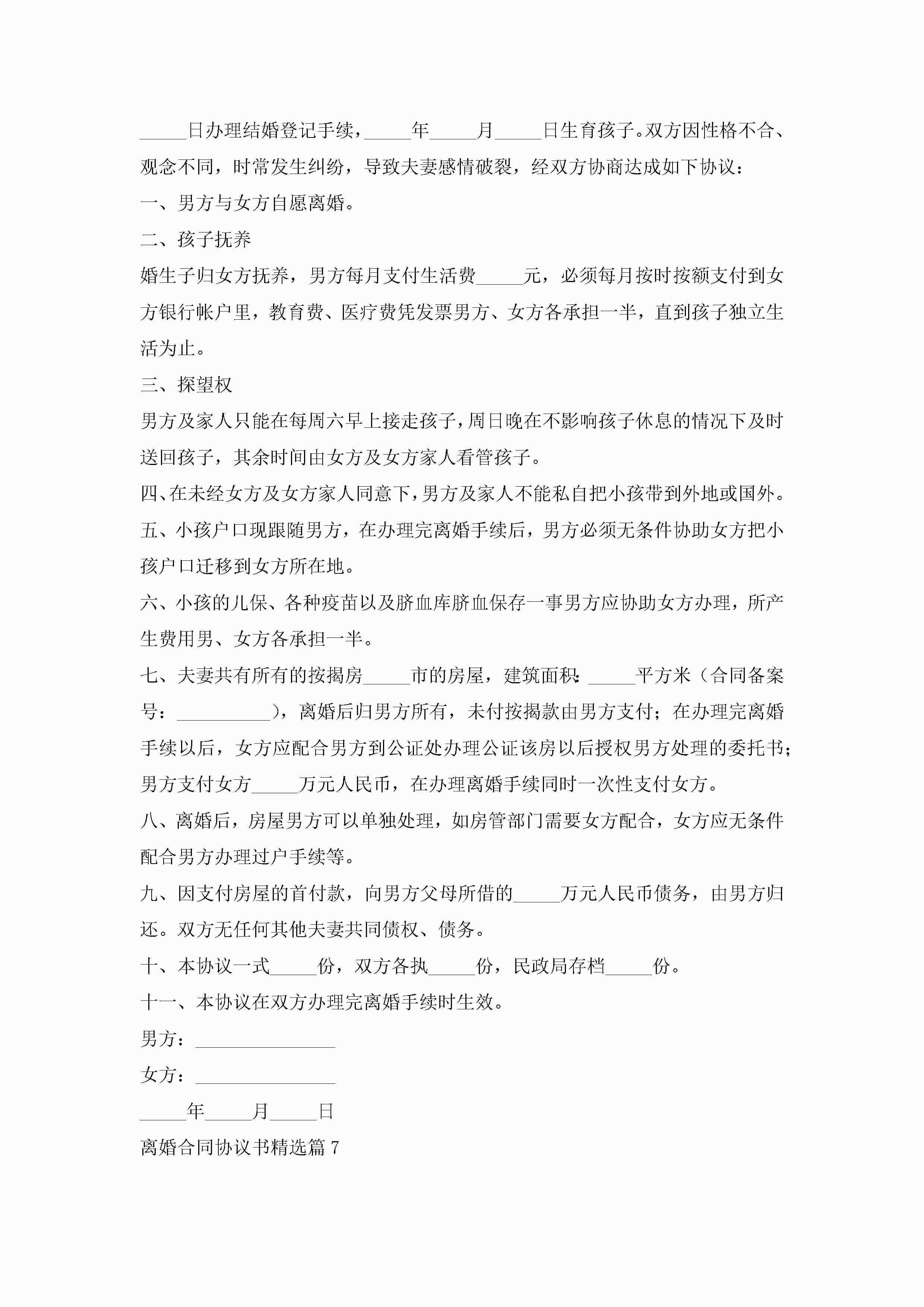 VIP最新离婚合同协议书电子版(优秀七篇)