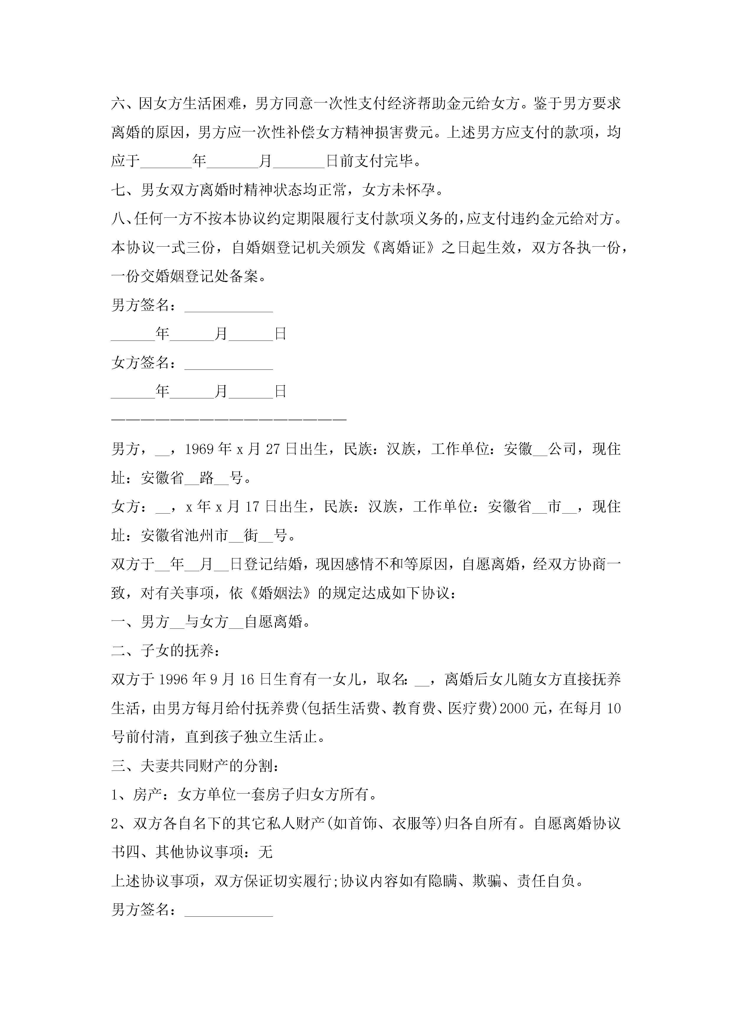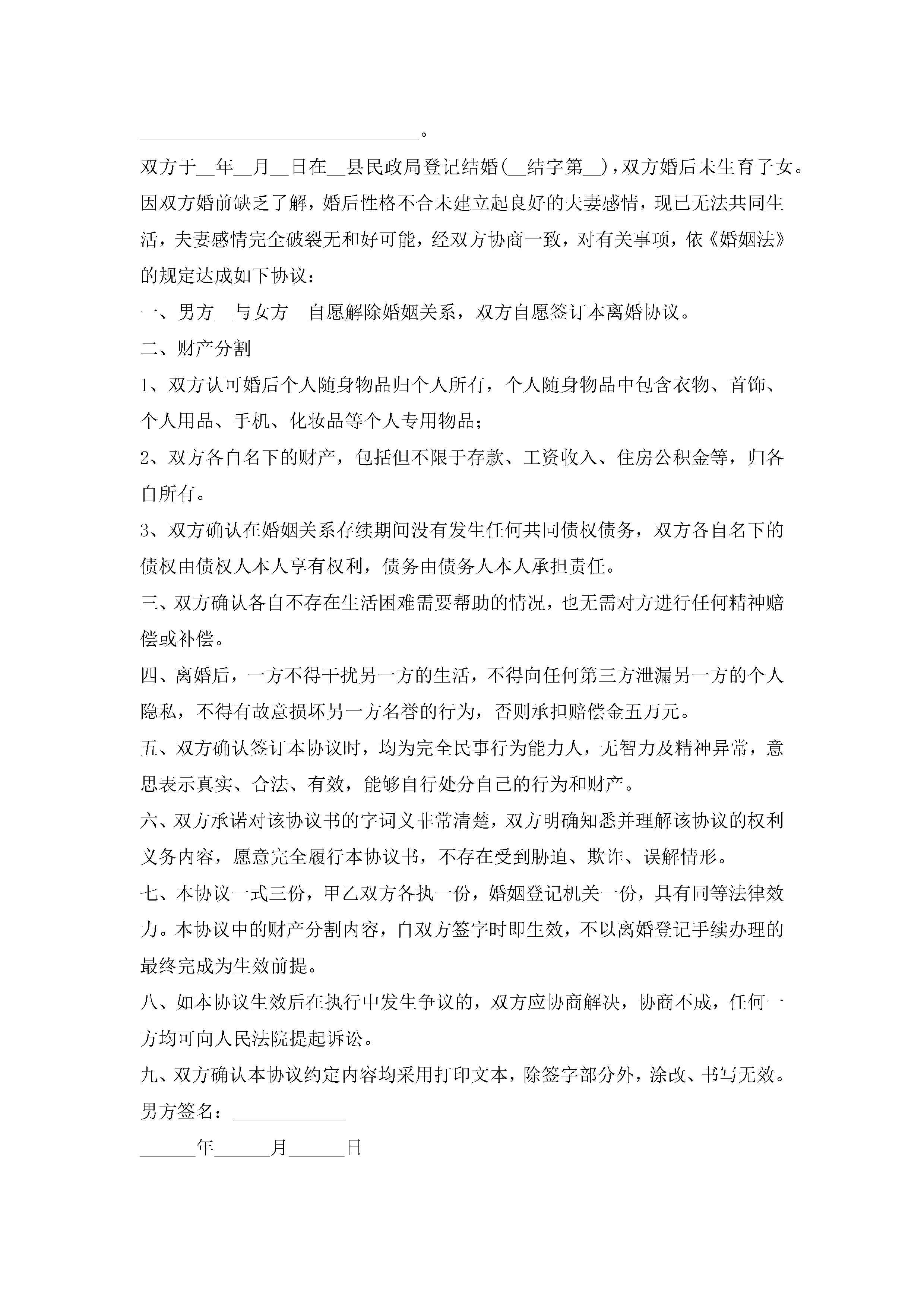 《离婚协议书》男方净身出户