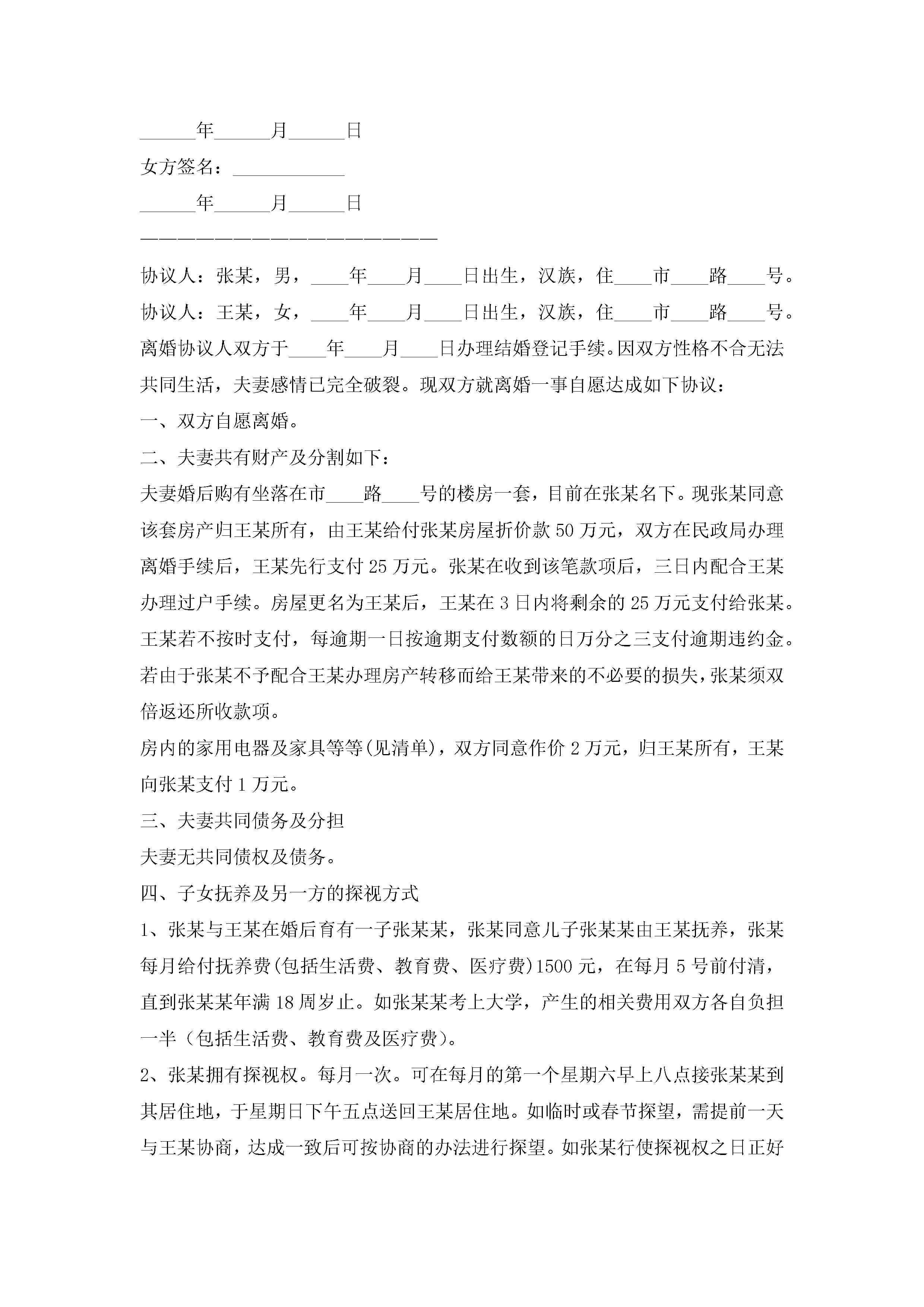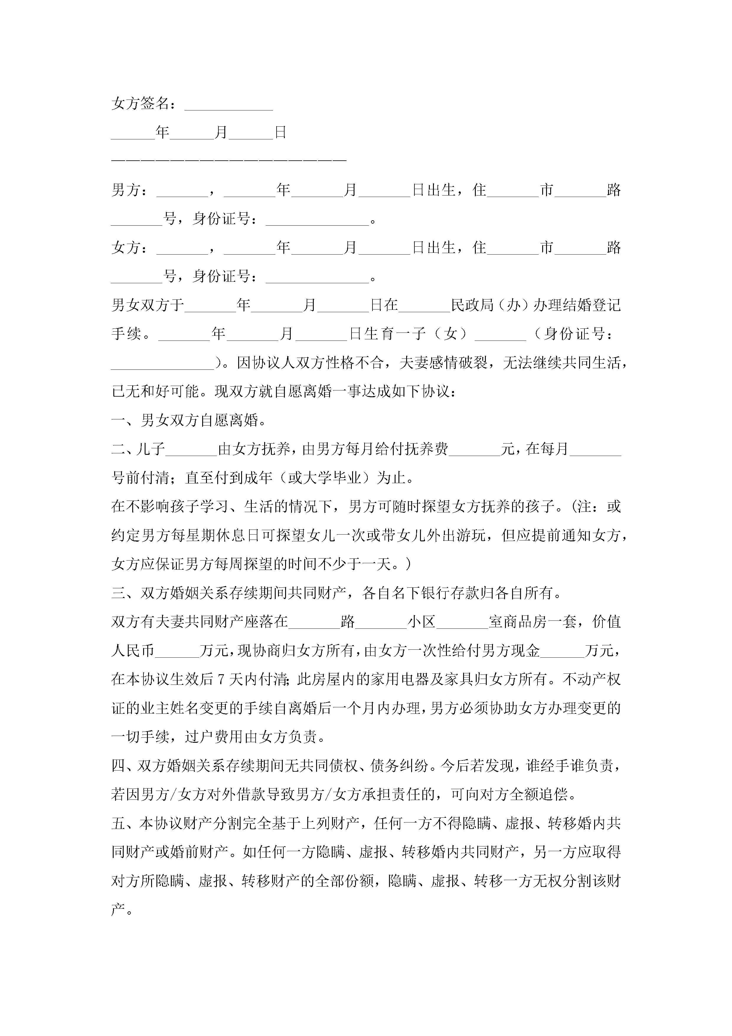 推荐:带封面离婚协议书(子女房屋汽车债务)