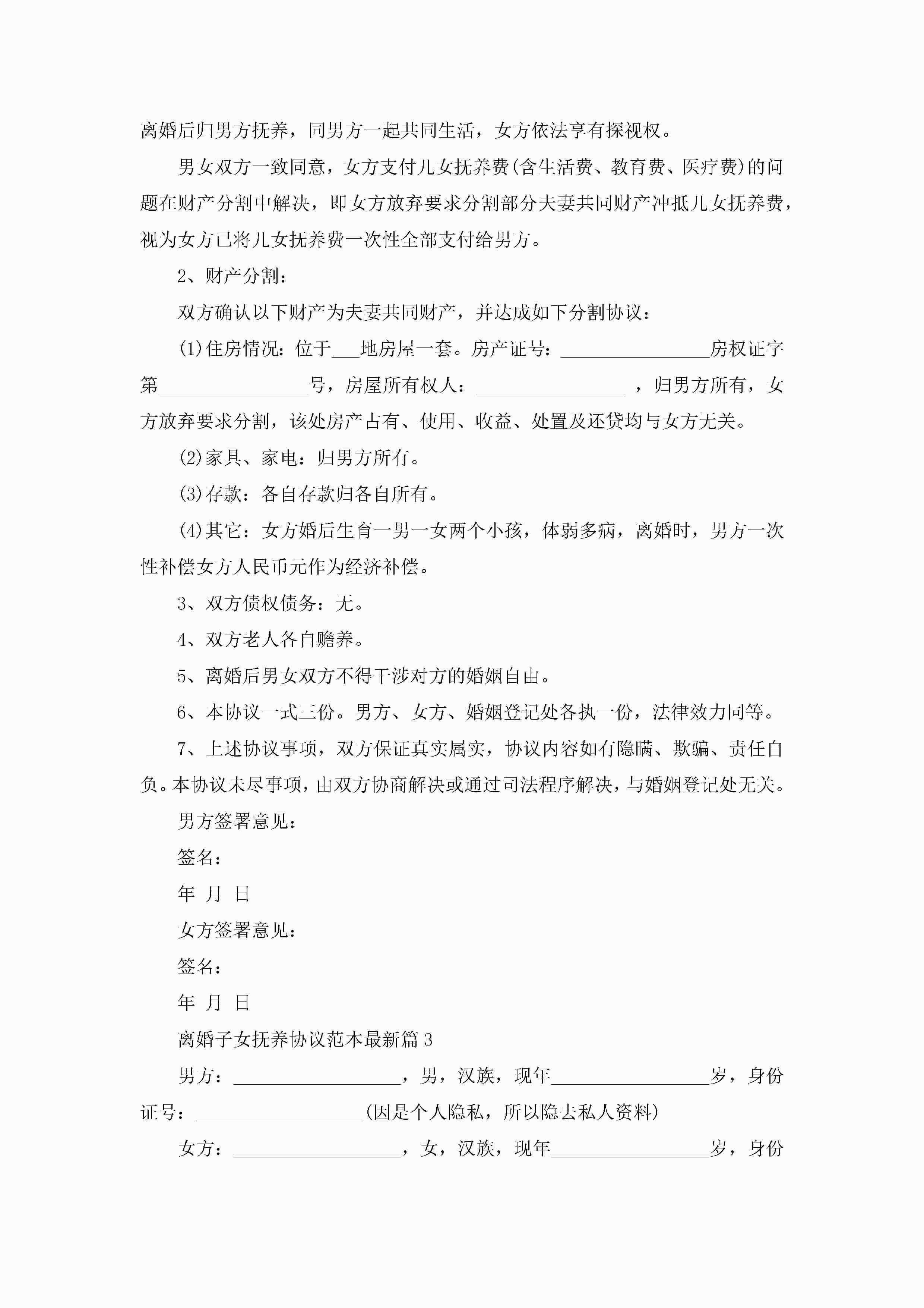 查看更多推荐:离婚协议书(两个子女有财产债务)