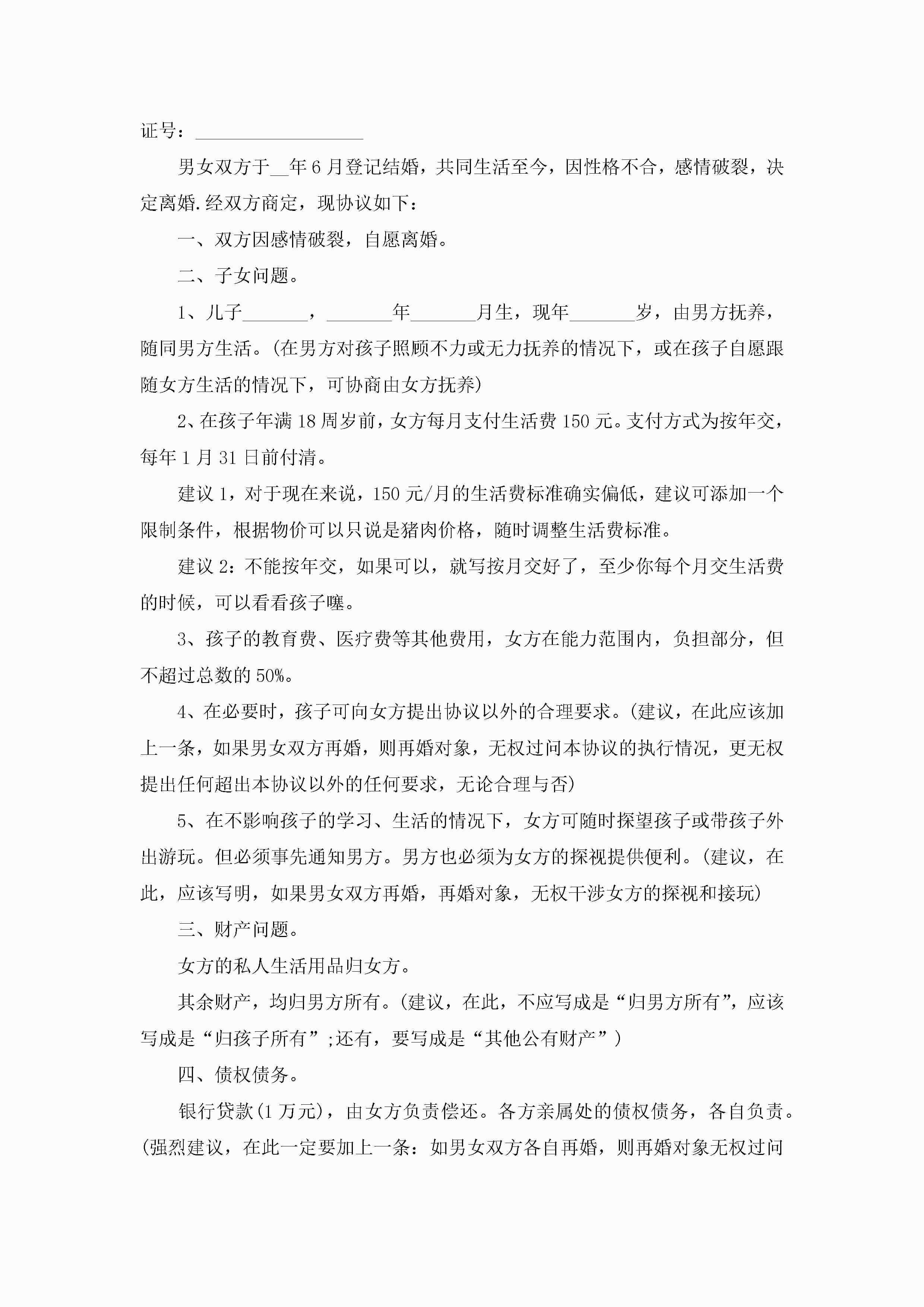 推荐:带封面离婚协议书(子女房屋汽车债务)